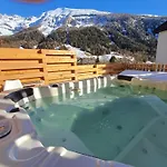 L'appartement Spacieux appart - 2 chambres à coucher incl Jacuzzi Privé Loèche-les-Bains spacieux comprend une terrasse et est situé à seulement 250 m du chemin des sources thermales et la passerelle. Le domicile de 100 m² avec un jacuzzi, un bain chaud et des bains publics chauds se trouve non loin des Thermes de Loèche-les-Bains.